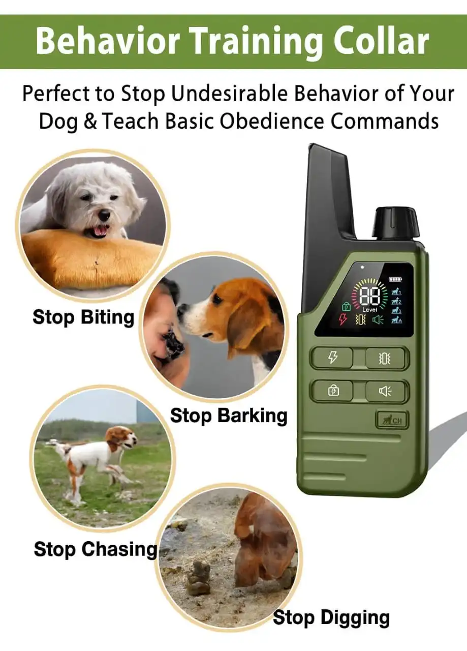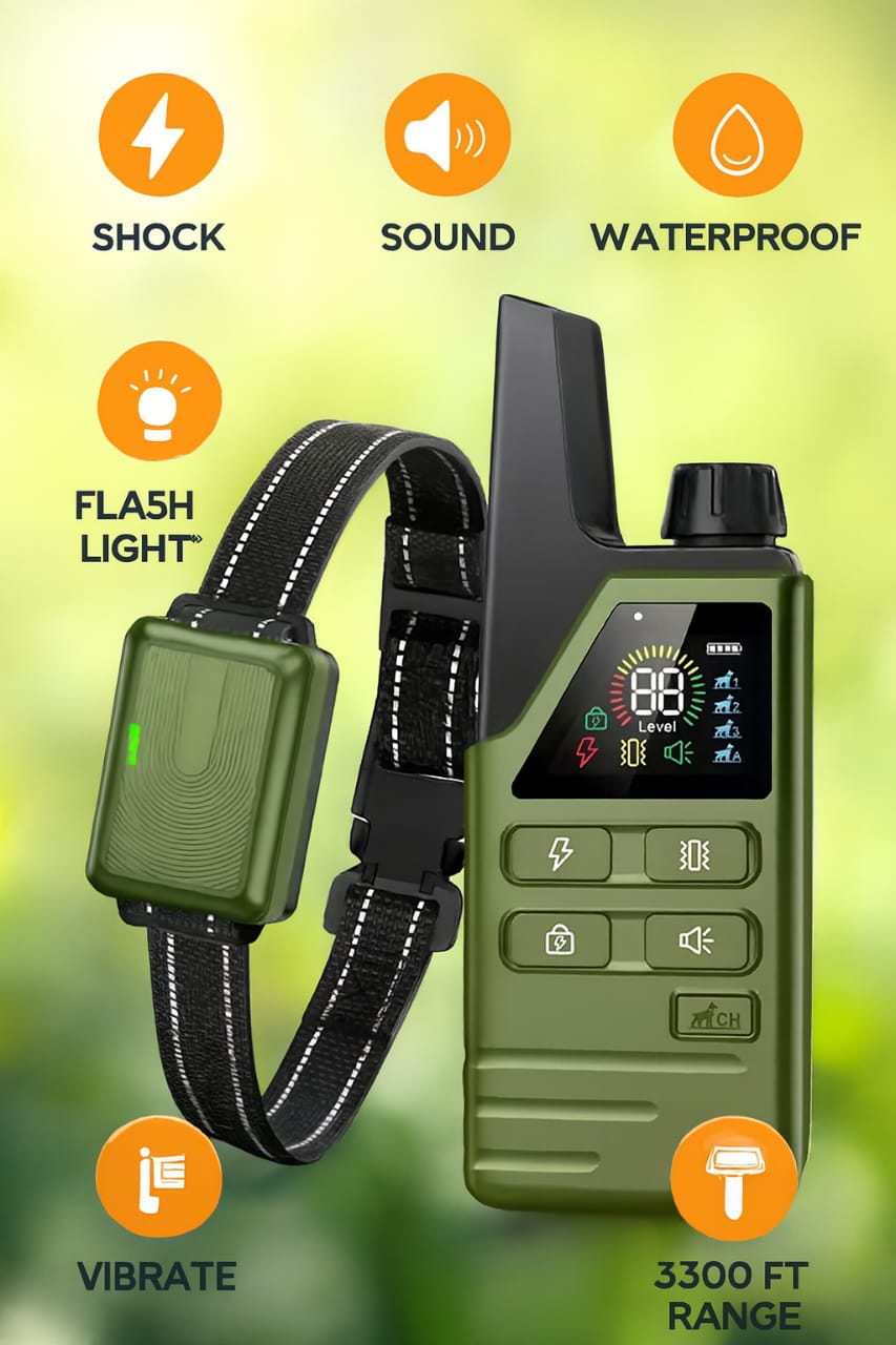 An Electric Dog Training Collar is designed to help pet owners train their dogs safely and effectively. This advanced remote dog training collar features adjustable training modes, long-range control, and a durable waterproof design that ensures reliable performance indoors and outdoors. Ideal for reducing unwanted behaviours, this dog shock collar also works as a bark control collar, giving you full control over training your pet humanely.